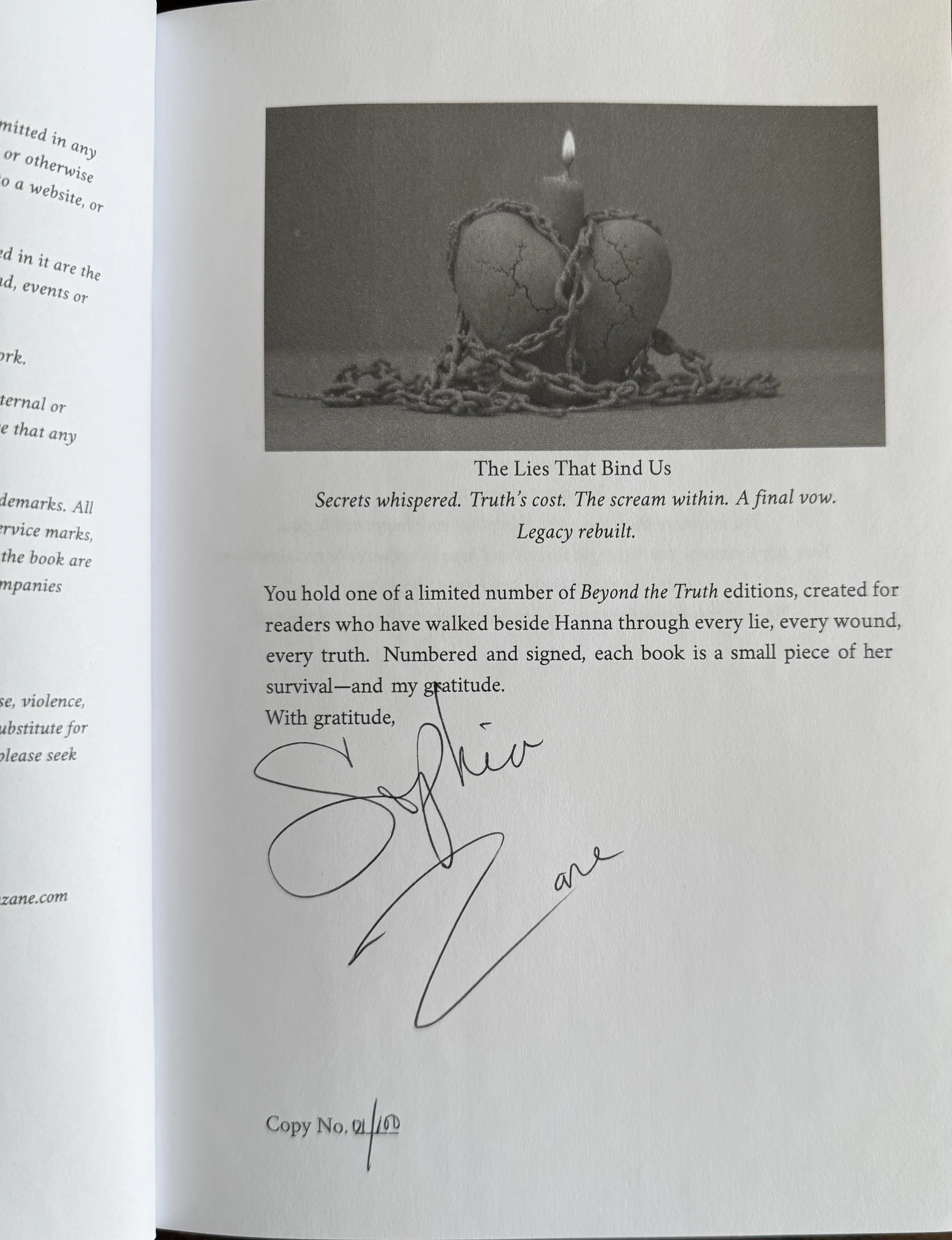 Categories: Select a Category book Store book | Beyond The Truth--Hardcopy with Jacket Numbered Special Edition -Limited $65.00 Purchase Added! The Lies We Whisper, Hardcopy with Jacket Numbered Special Edition -Limited $55.00 Purchase Added! Hard Cover with Jacket, Autographed Copy $39.99 Sold out Sold Out Added! The Lies We Whisper Autographed Paperback $21.99 Sold out Sold Out Added! The Lies We Whisper autographed Hard Copy with jacket $39.99 Sold out Sold Out Added!